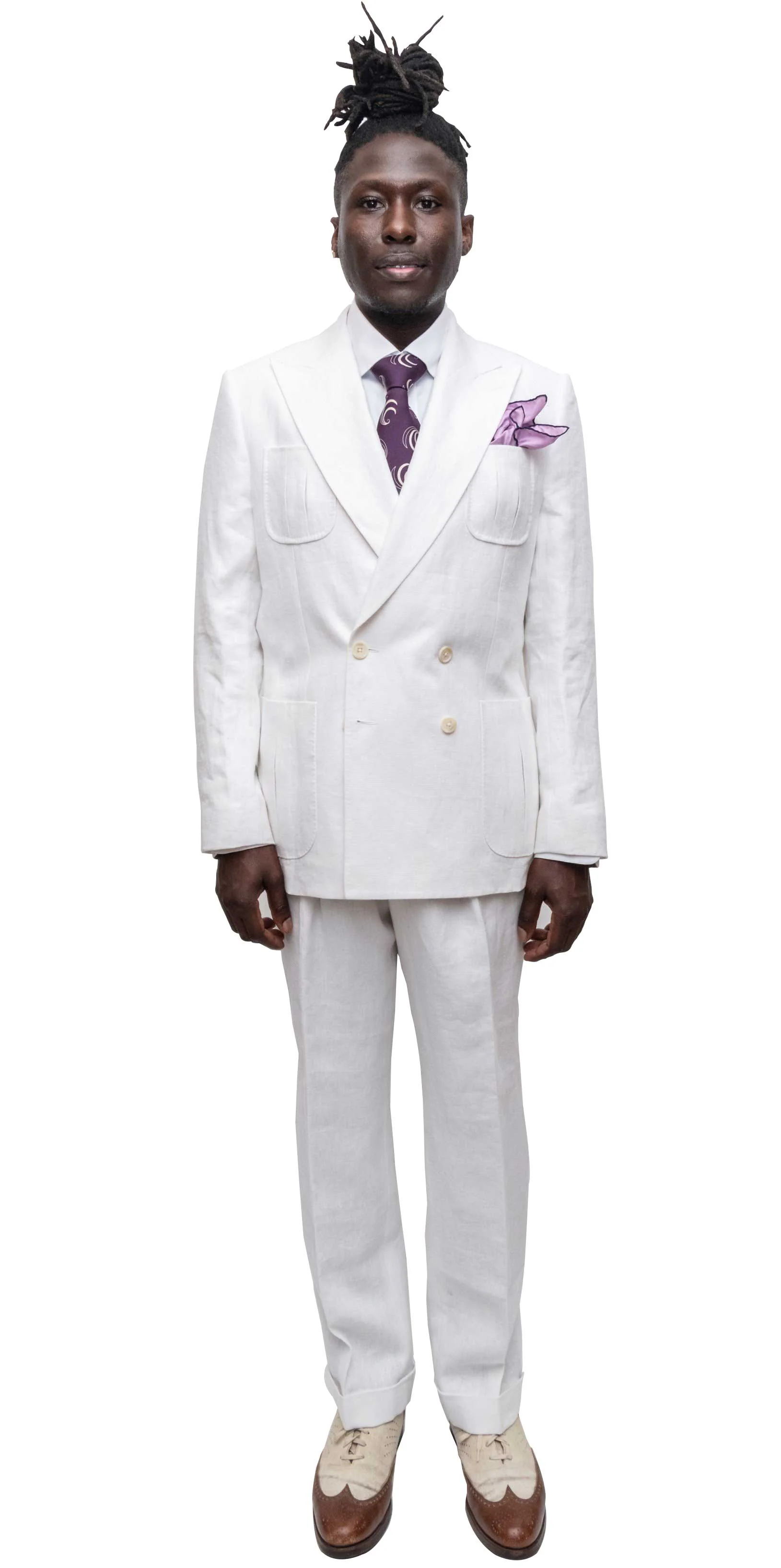 *Peak Lapels. Open buttonhole on wearer’s left. 4 on 2 Double-breasted silhouette.